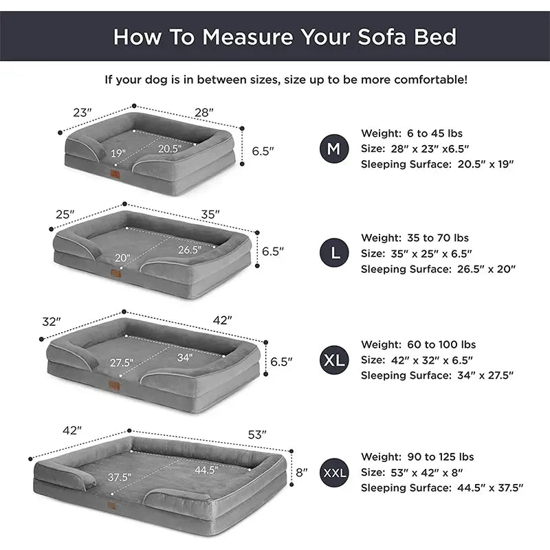 • Orthopedic Support: Our orthopedic dog bed is designed to give your pet unparalleled support for a deep, dreamy sleep. High-density egg-crate foam helps distribute weight evenly and provides the perfect amount of pressure relief and joint support.