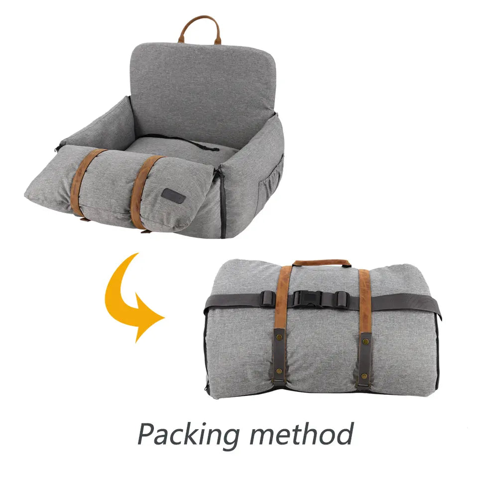 Adaptable to almost any car, this dog travel accessory is held in place with a simple buckle. This, along with this canine booster seat’s ability to be converted into a rucksack, makes moving it between cars a breeze. It features a washable cover for easy cleaning. Grey or brown with warm leather accents, it will fit in with any car interior. Add one of these to your cart and make road trips more fun for everybody!
